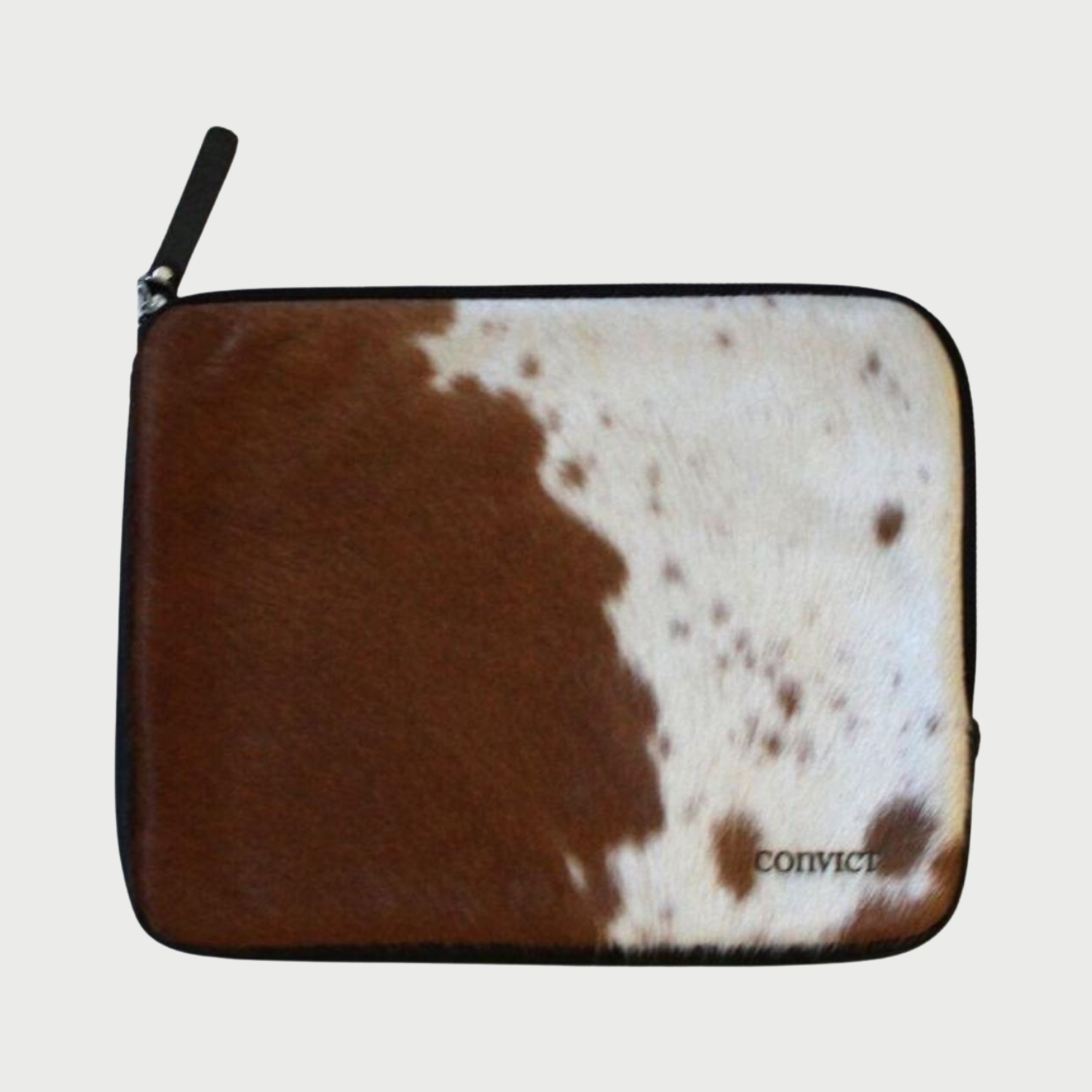 This stylish brown and white hide tablet cover has extra padding to keep your iPad or tablet snug and secure. Whether for business or personal use you will find this unique cover a pleasure to use.