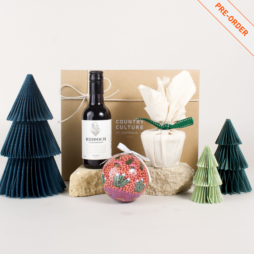 Our 'A Little Country Christmas' hamper captures the charm and warmth of a relaxed Aussie Christmas, with a focus on heartfelt tradition and regional flavours. Thoughtfully curated, this beautiful gift brings together a touch of festive indulgence, a splash of local wine, and a piece of meaningful art - perfect for those who love a more down-to-earth holiday celebration.