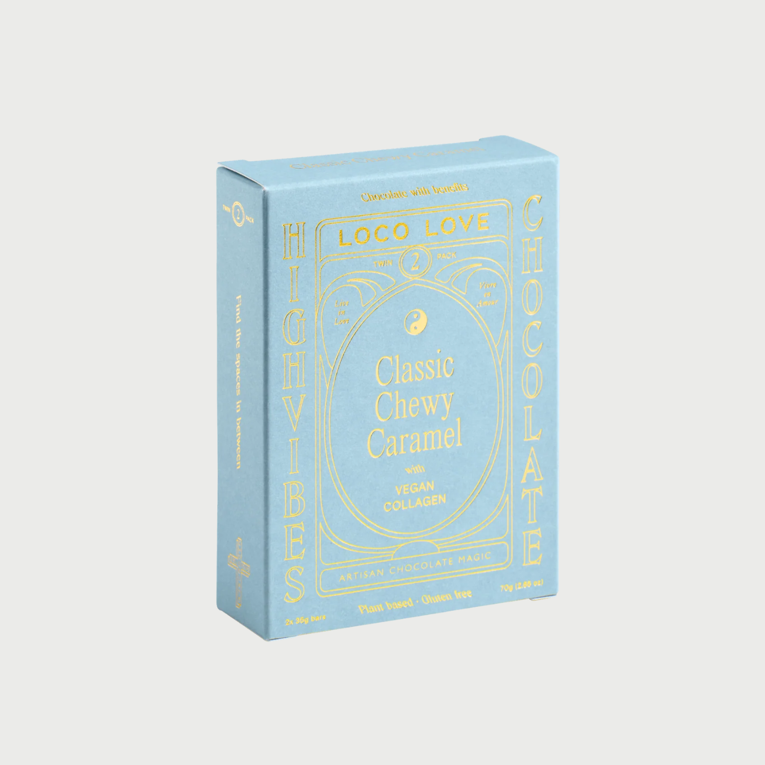 Mindfully indulge with a lusciously chewy and irresistibly gooey caramel centre, wrapped in sumptuous 70% dark chocolate and enhanced with vanilla and plant-based collagen for both inner and outer glow. Enjoy this delightful fusion of wellness and taste in every bite of Loco Love