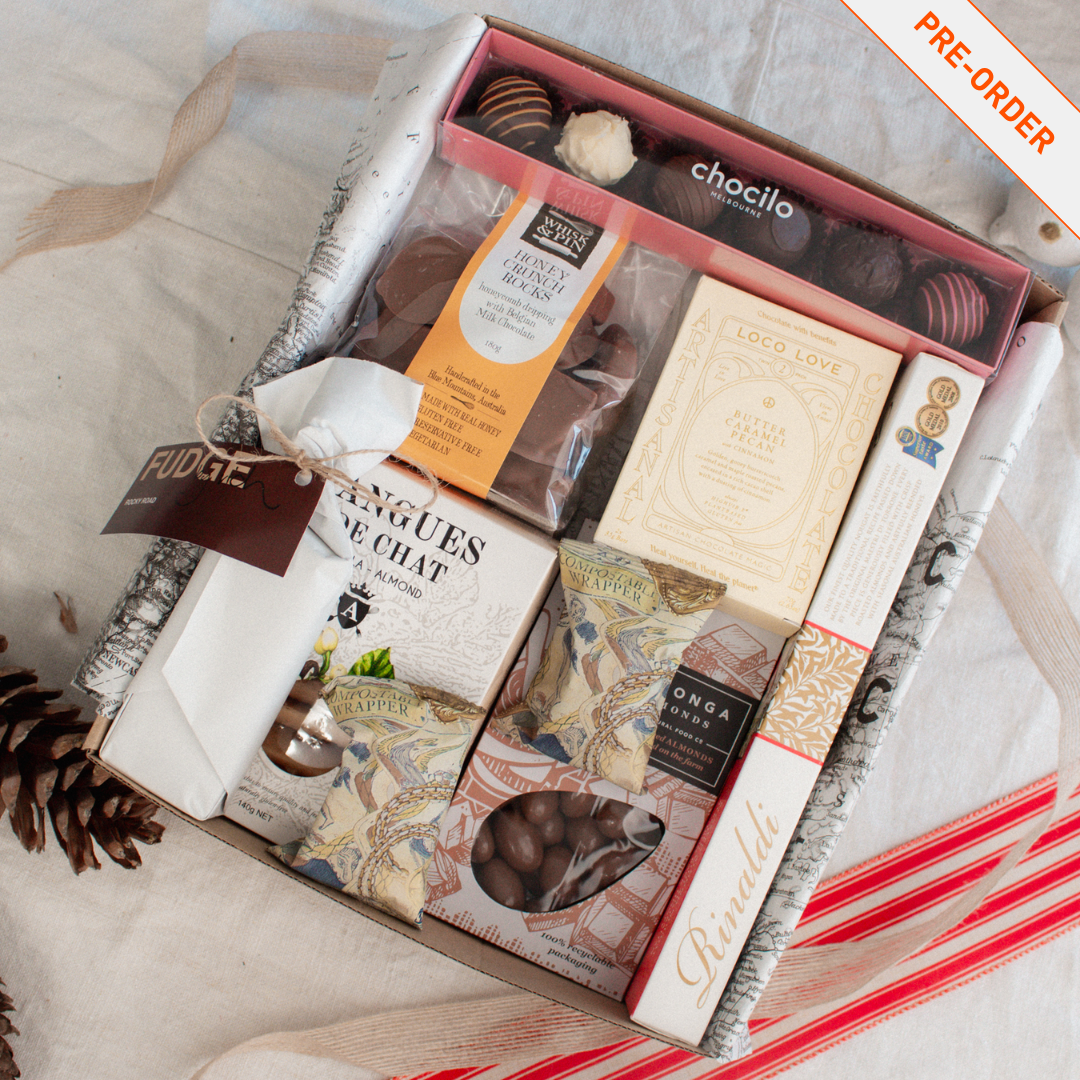 What more could you possibly want from a gift than an emormous box of decadent chocs, fudges, nougats and nuts? Our 'Deluxe Decadence' is exactly that - a curated collection of our best-selling sweet treats thoughtfully sourced from Australian chocolatiers and artisans.