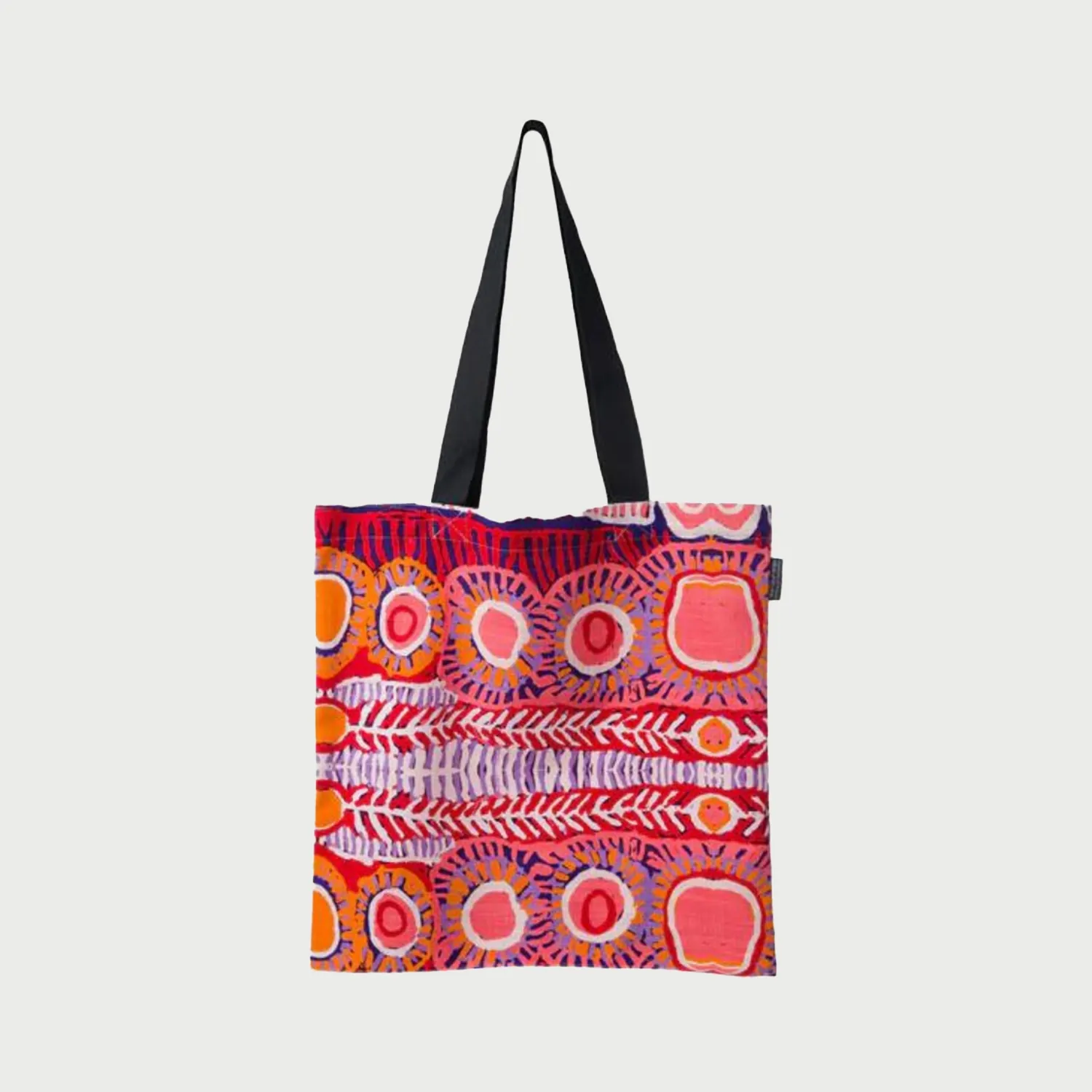 Colourful and functional, these versatile cotton tote bags feature artwork by Murdie Morris from Warlukurlangu Artists, a not-for-profit organisation that is 100% Aboriginal-owned by its artists from the remote desert communities of Yuendumu and Nyirripi in Central Australia.