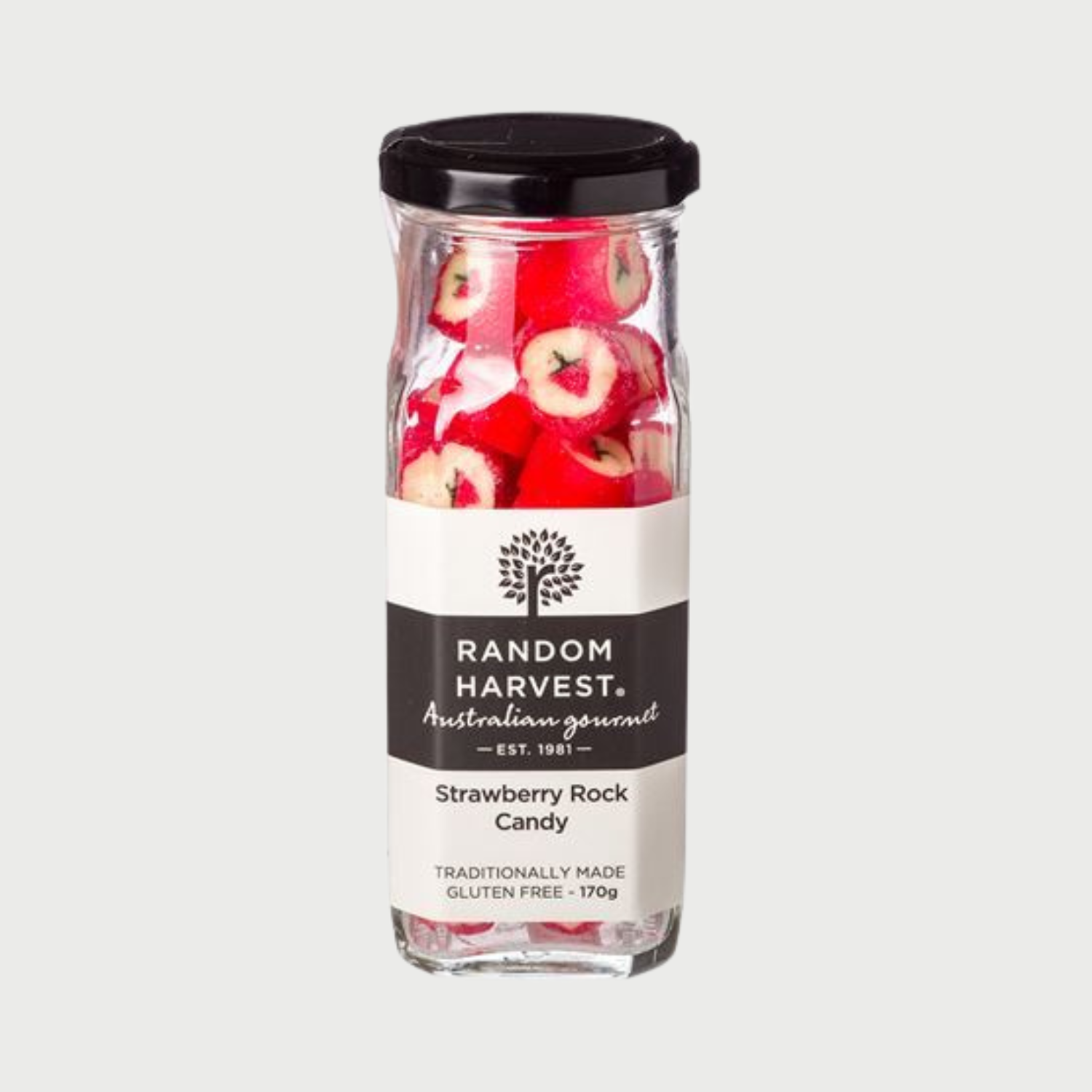 A true favourite across the generations, Random Harvest's fabulous Strawberry Rock Candy is an absolute delight. Made in small batches by expert candy artisans, this iconic handmade rock candy features a fabulous strawberry image centre and a mouthwatering strawberry flavour.