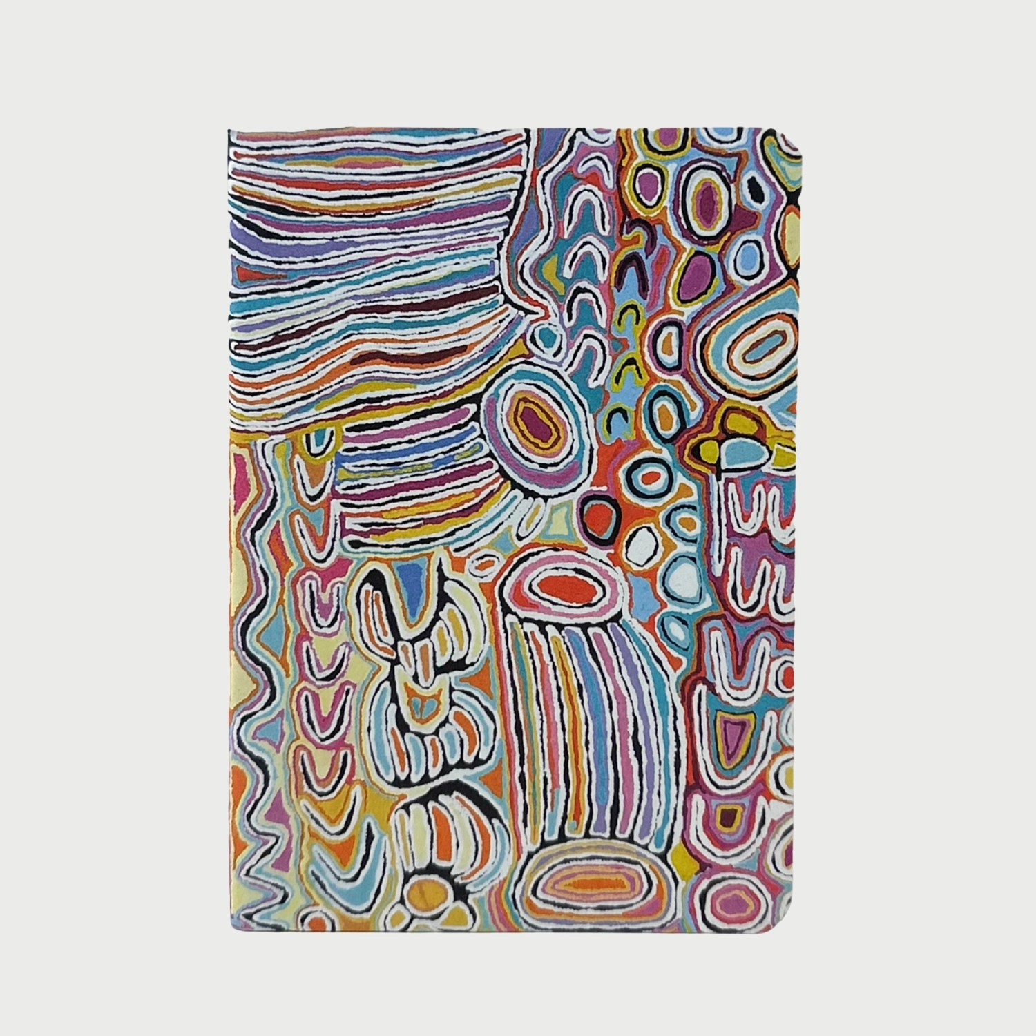 Jot down your thoughts in these colourful little notebooks, showcasing artwork by Judy Napangardi Watson and tells the story of 'Mina Mina Jakurrpa (Mina Mina Dreaming)'.