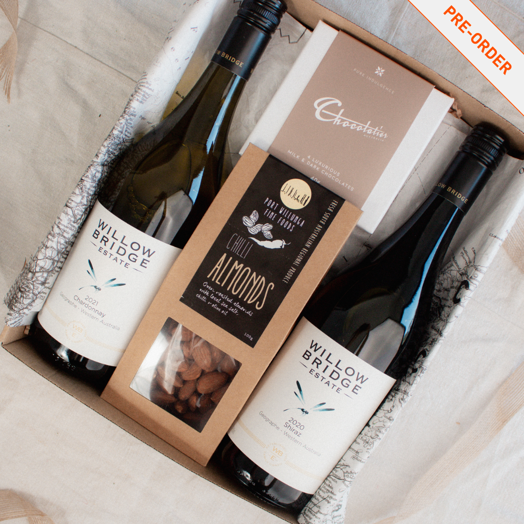 Celebrate the end of the year and the beginning of the festive season with this 'Wine Enthusiast' gift hamper. Featuring two bottles of Australian wine accompanied by an assortment of sweet and savoury nibbles for under $100, this hamper is ideal for corporate use, whether that be to express thanks to clients or for office celebrations among staff. This hamper is available for same day Sydney delivery, or nationwide delivery.