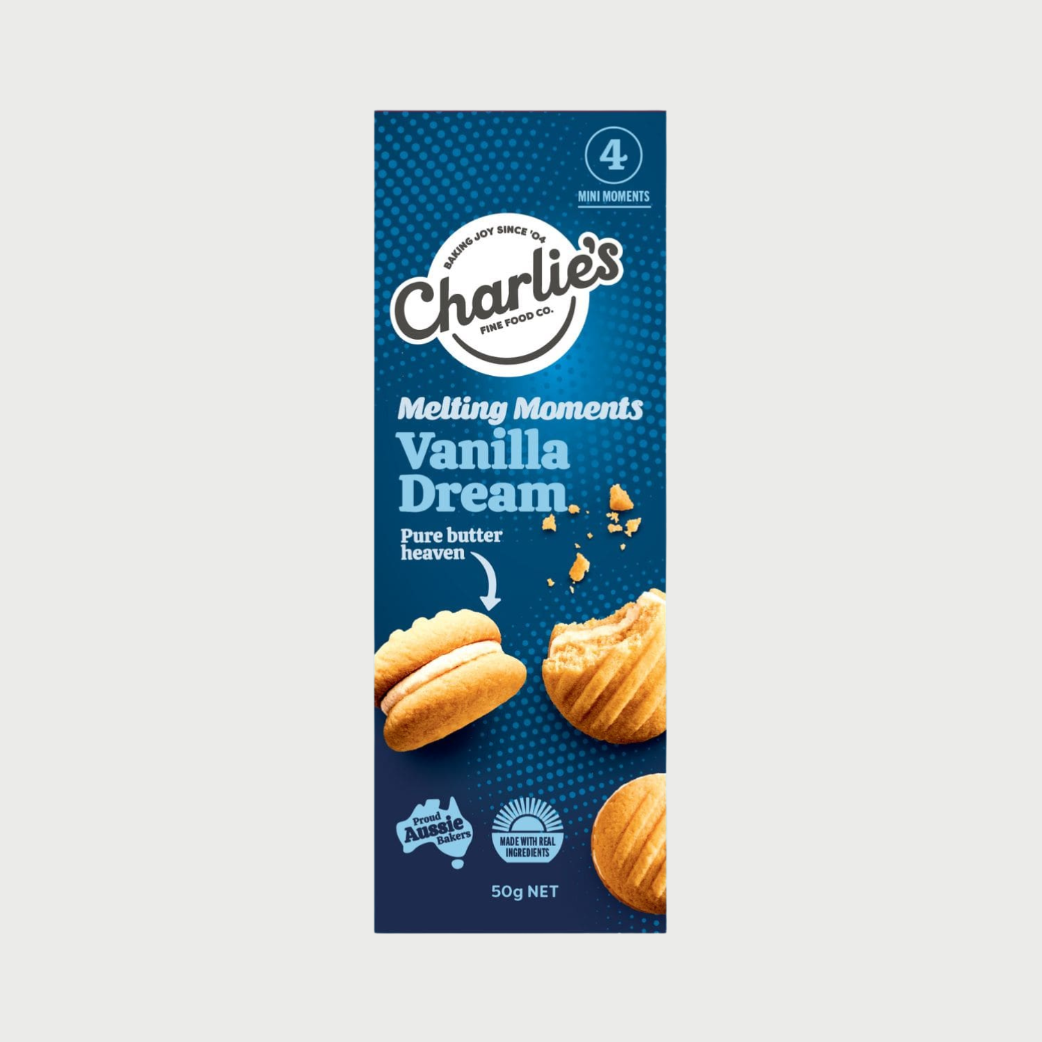 Delectable Vanilla Bean Melting Moments sandwiched together with classic butter cream. Made with premium ingredients and 100% pure butter, our delectable Vanilla Bean Mini Melting Moments are a mouthful of guilt free goodness.